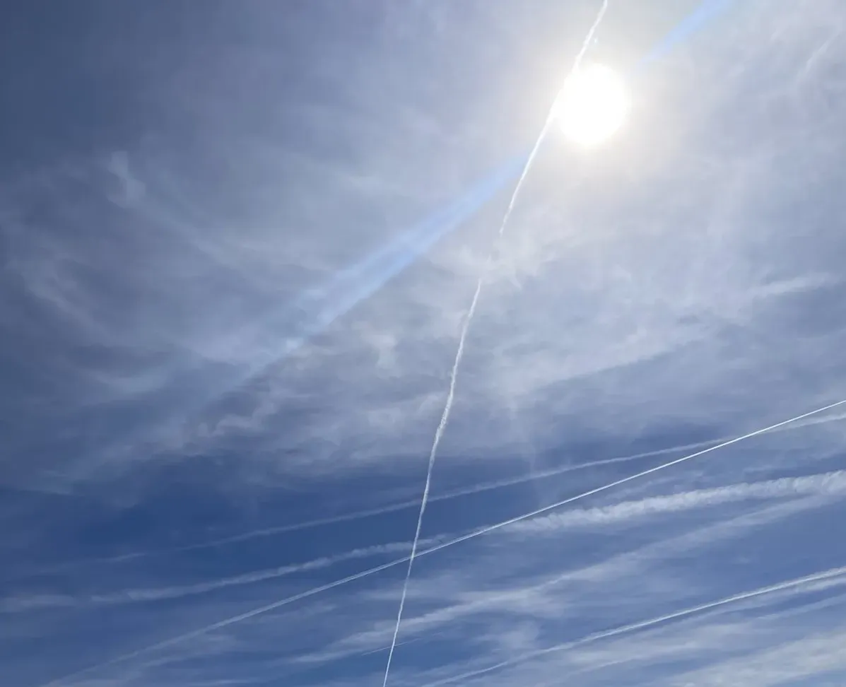 What began as quiet concern has grown into a movement. One of our founders, a longtime triathlete, recalls how the skies used to be — clear, predictable, alive. But during Thanksgiving week of 2024, the transformation became undeniable. The sky would start off clear, then become crosshatched by aircraft trails until the sun was dimmed by a gray canopy. "They should do something about this."